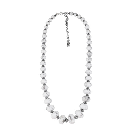 EXCLUSIVELY OURS! Sterling Silver White Howlite Graduated Rondelle Bead Chunky Necklace, 23 to 27 Inches