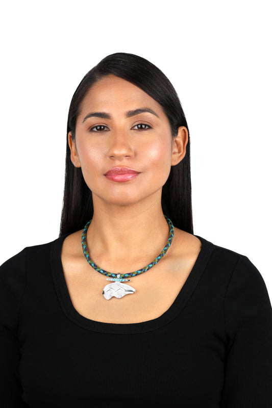 Sterling Silver White Howlite and Sleeping Beauty Turquoise Bear Pendant Enhancer