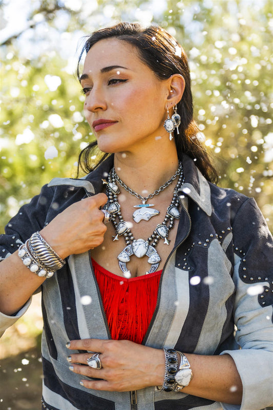 Like turquoise, each howlite gemstone has a unique pattern created by Mother Nature. It doesn't get more beautiful than that. You'll find a fabulous collection of white howlite pieces at American West Jewelry in a variety of styles, making any choice the ideal birthday, holiday or graduation gift. This collection is made even more alluring by the offer of free shipping on every order over $100, so browse the white howlite jewelry available at American West Jewelry and order today.