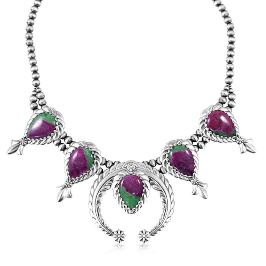 Sterling Silver Ruby Zoisite Pear-Cut Squash Blossom Necklace, 17 to 20 Inches