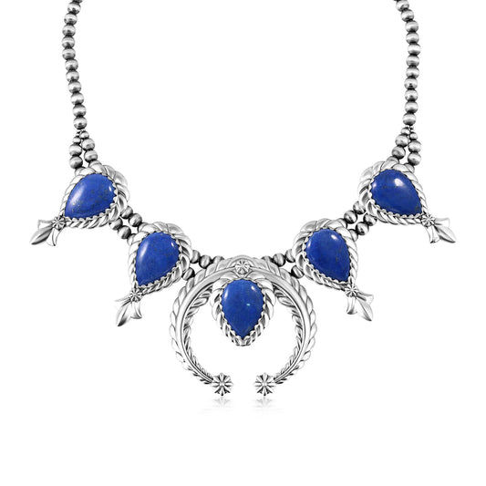 Sterling Silver Lapis Pear-Cut Squash Blossom Necklace, 17 to 20 Inches