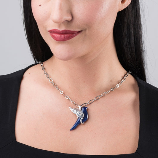 Sterling Silver Blue Sodalite Large Spirit Bird Pendant Enhancer