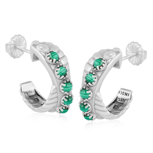 Sterling Silver Malachite Twist Band Ring, Sizes 5 to 11