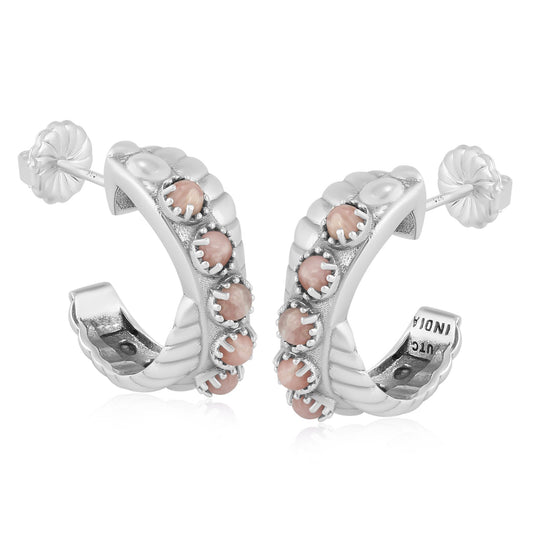 Sterling Silver Rhodochrosite Twist Hoop Earrings