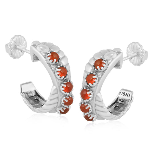 Sterling Silver Red Onyx Twist Hoop Earrings