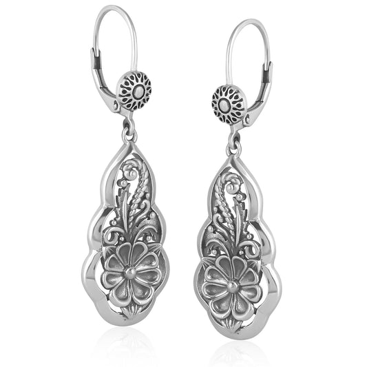 EXCLUSIVELY OURS! Sterling Silver Flower Lever Back Earrings