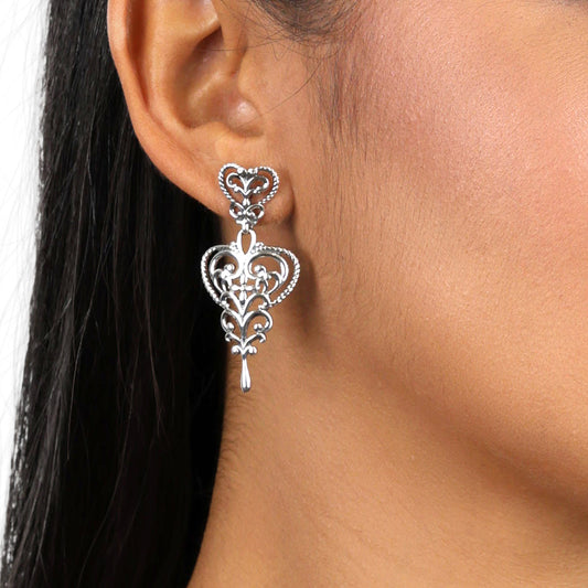 EXCLUSIVELY OURS! Sterling Silver Double Filigree Heart Drop Earrings