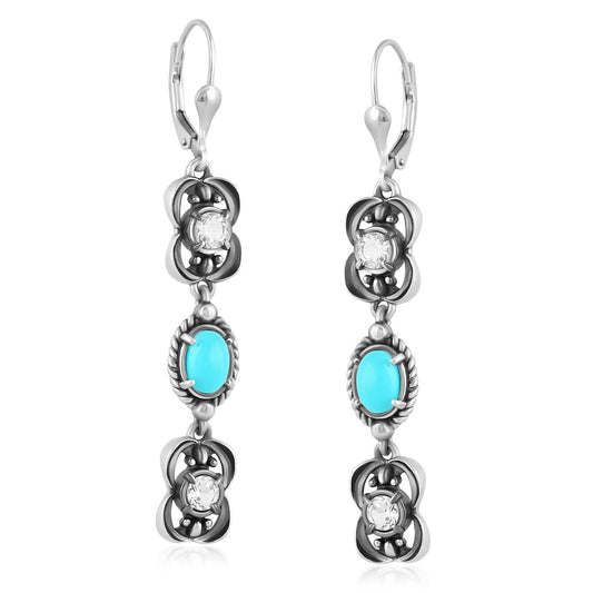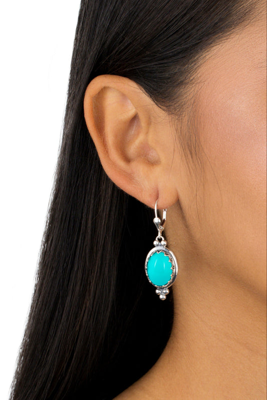 EXCLUSIVELY OURS! Sterling Silver Kingman Turquoise Crown Detail Lever Back Earrings