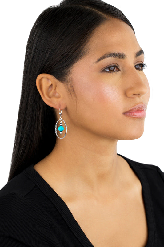 EXCLUSIVELY OURS! Sterling Silver Kingman Turquoise Rope and Bead Halo Dangle Earrings