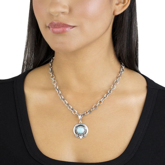 EXCLUSIVELY OURS! Sterling Silver Kingman Turquoise Oval Naja Pendant Enhancer