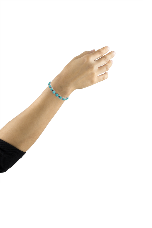 LIMITED EDITION! Sterling Silver Kingman Turquoise Round Cabochon Tennis Bracelet, Sizes Small to Large