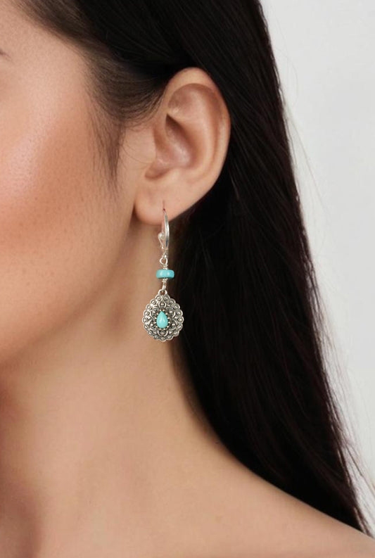 Sterling Silver Kingman Turquoise Concha Lever Back Dangle Earrings