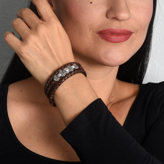 Unique Leather Bracelets, Necklaces and Earrings. Find an array of beautiful, handmade jewelry in our leather collection to enhance your Western wardrobe. Our selection spotlights the versatility of real leather - you can find a leather toggle bracelet, braided olive green leather earrings with a sterling silver desert flower detail and leather toggle necklaces in a rainbow of hues, just to name a few. Our artisan jewelers craft each piece with care, drawing on skills honed over decades to achieve the highest standards of excellence.