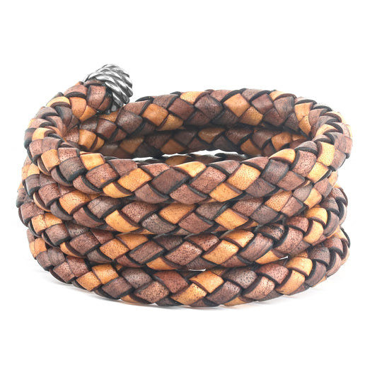 Sterling Silver Multi-Color Braided Brown Leather Coil Wrap Bracelet, 34 Inches