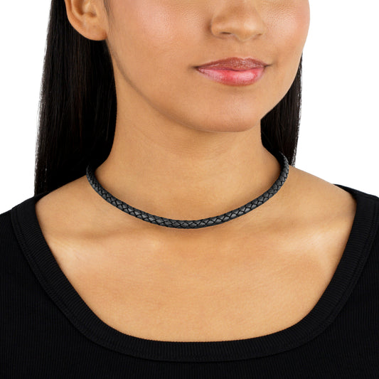 Braided Black Genuine Leather Sterling Silver Necklace, 17 -20 Inches