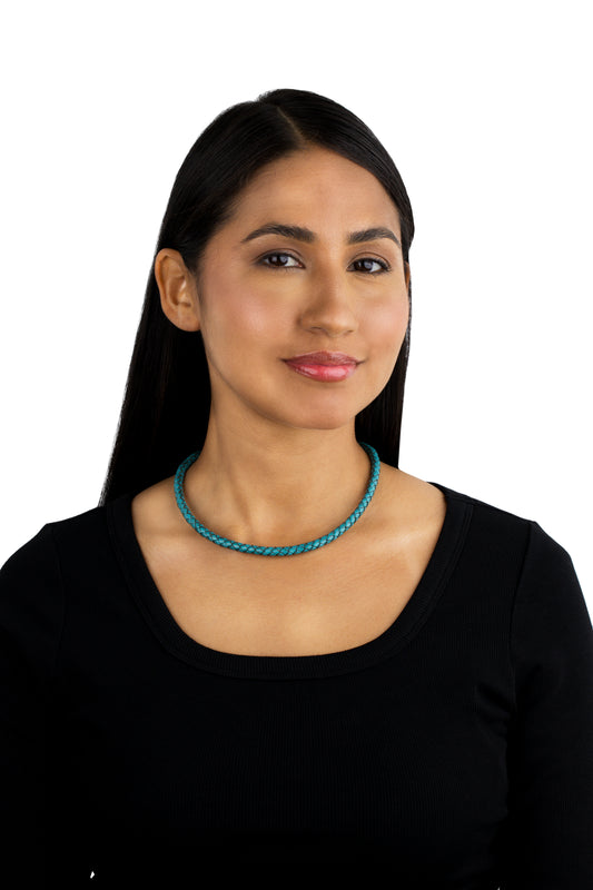 Braided Turquoise Genuine Leather Sterling Silver Necklace, 17-20 Inches