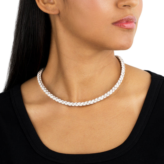 Braided White Genuine Leather Sterling Silver Necklace, 17-20 Inches