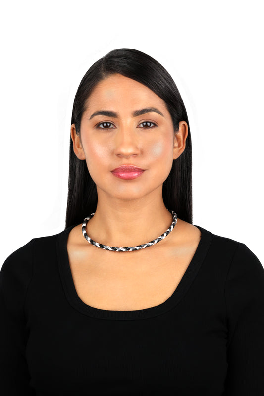 Sterling Silver Multi-Color Braided Black, White and Gray Leather Necklace, 17 and 20 Inches