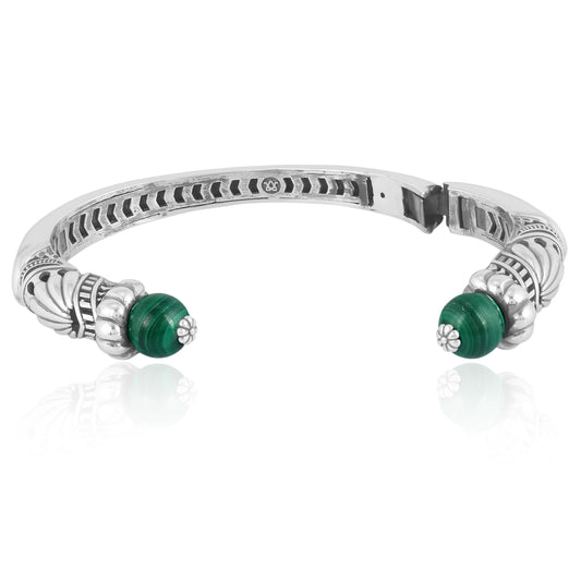 Sterling Silver Malachite Gemstone Hinged Cuff Bracelet, Sizes Small and Medium