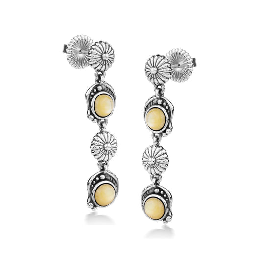 EXCLUSIVELY OURS! Sterling Silver Yellow Mother of Pearl Leaf and Flower Dangle Earrings