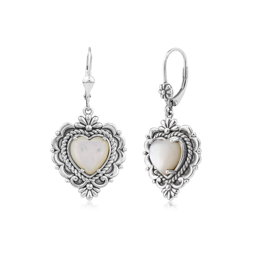 EXCLUSIVELY OURS! Sterling Silver White Mother of Pearl Heart Lever Back Earrings