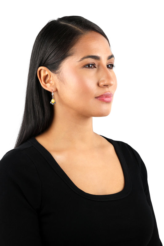 Sterling Silver Pear Shape Yellow Mother of Pearl Fan Lever Back Earrings
