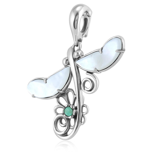 EXCLUSIVELY OURS! Sterling Silver White Mother of Pearl and Variscite Fritz Casuse Dragonfly Pendant Enhancer