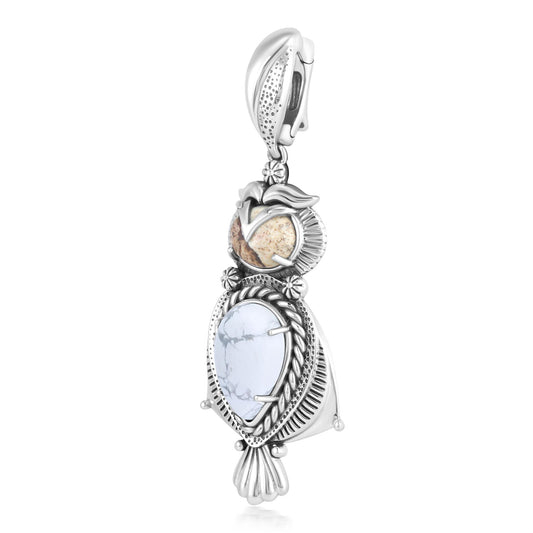 Sterling Silver Picture Jasper and Howlite Owl Pendant Enhancer