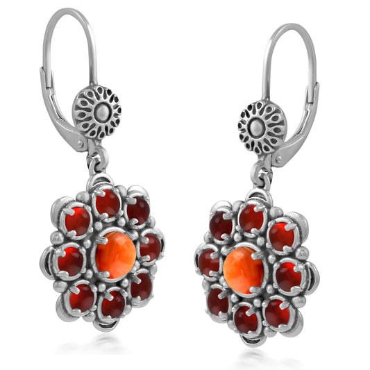 EXCLUSIVELY OURS! Sterling Silver Orange Spiny Oyster and Red Onyx Flower Cluster Earrings