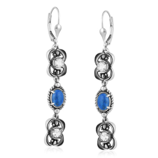 Sterling Silver Kingman Turquoise and Lapis Chandelier Earrings