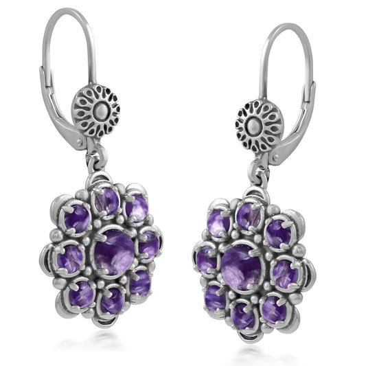 EXCLUSIVELY OURS! Sterling Silver Charoite Flower Cluster Earrings