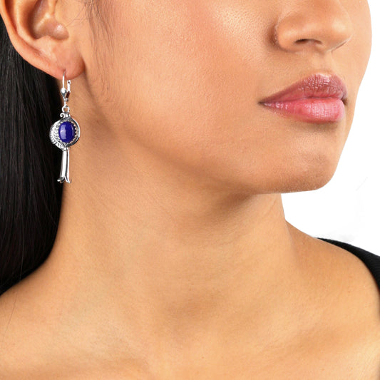 EXCLUSIVELY OURS! Sterling Silver Lapis Leaf and Squash Blossom Design Dangle Earrings