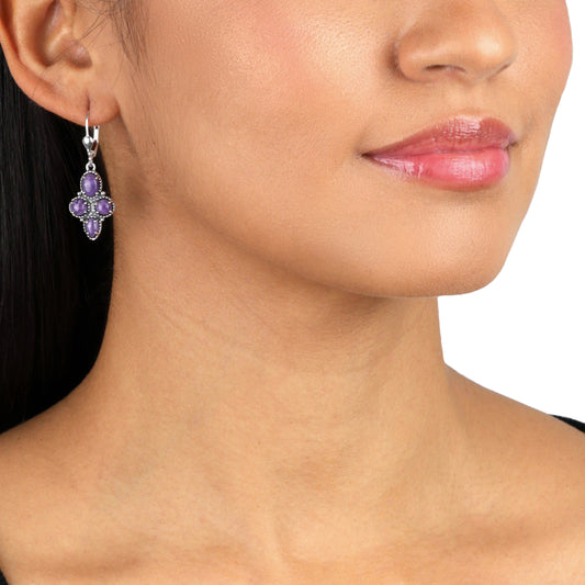 EXCLUSIVELY OURS! Sterling Silver Charoite Leaf and Squash Blossom Design Dangle Earrings