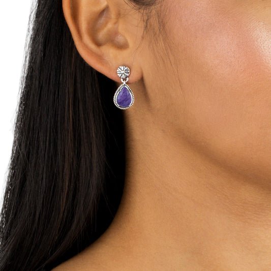 EXCLUSIVELY OURS! Sterling Silver Charoite Floral and Rope Design Dangle Earrings