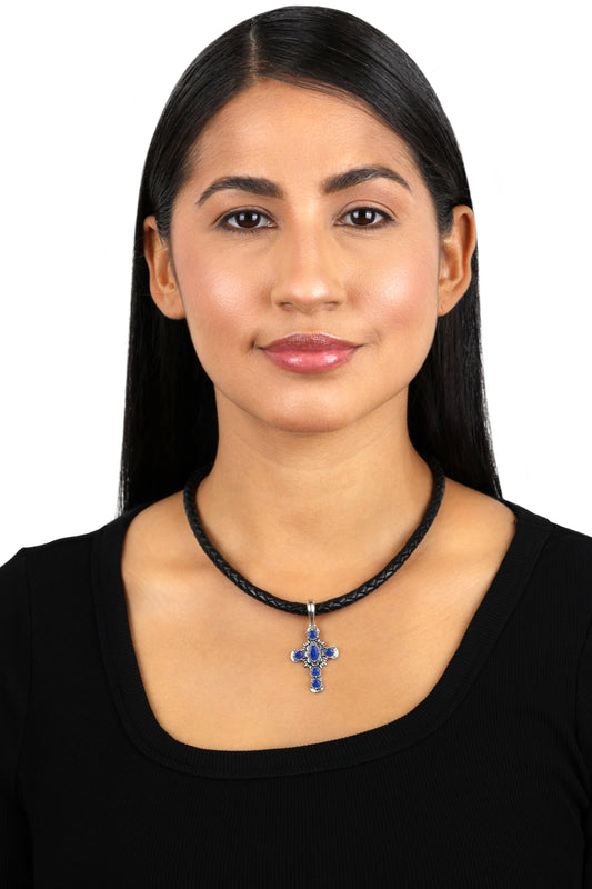 EXCLUSIVELY OURS! Sterling Silver Lapis Cross Pendant Enhancer