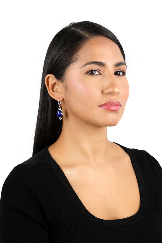 Sterling Silver Lapis Crown Detail Lever Back Earrings