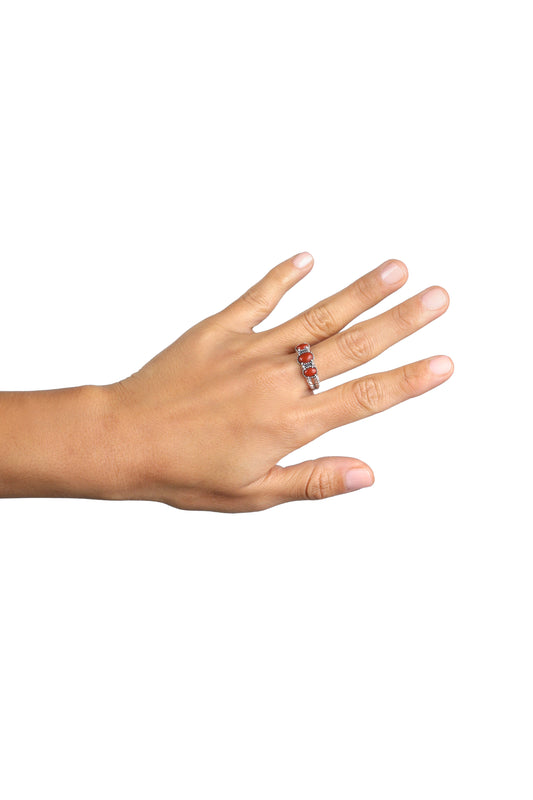EXCLUSIVELY OURS! Sterling Silver Orange Spiny Oyster Gemstone 3-Stone Friendship Ring, Sizes 5 to 10