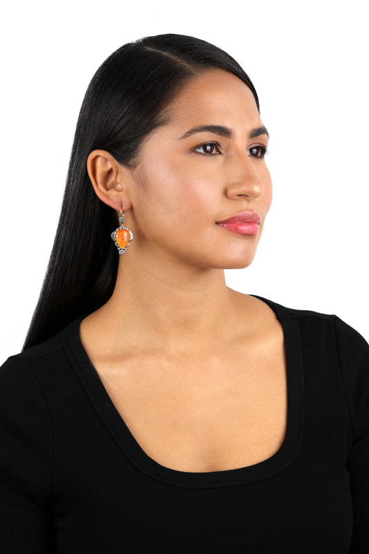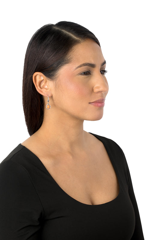 Sterling Silver Orange Spiny Oyster Pear-Cut Concha Dangle Earrings