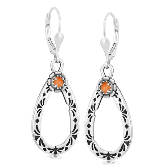 Sterling Silver Orange Spiny Oyster Gemstone Drop Earrings