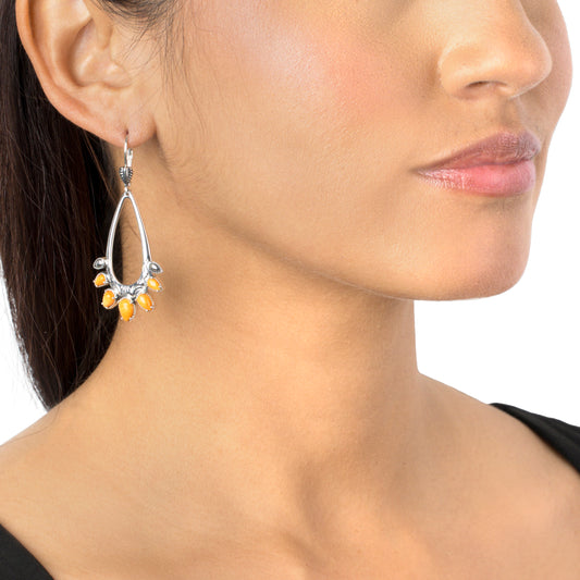 Sterling Silver Orange Spiny Oyster Open Pear Gemstone Lever Back Earrings
