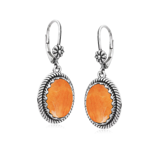 EXCLUSIVELY OURS! Sterling Silver Orange Spiny Oyster Oval Drop Lever Back Earrings