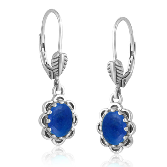 Sterling Silver Lapis Fritz Casuse Oval Gemstone Naja Earrings