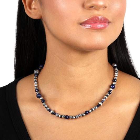 Sterling Silver Genuine Lapis Lazuli Multi Beaded Necklace, 17 - 19 Inches