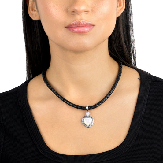 Sterling Silver White Mother of Pearl and Pink Opal Heart Pendant Enhancer