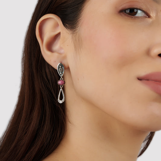 Sterling Silver Rhodonite Teardrop Double Loop Gemstone Earrings
