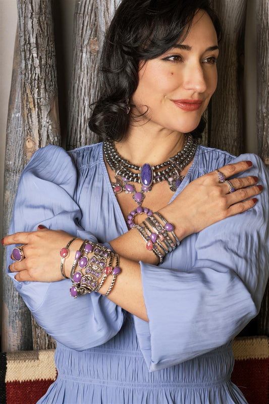 All the rhodonite jewelry from American West Jewelry is handcrafted and designed in our Albuquerque, New Mexico studio. Each pink rhodonite stone is carefully placed by hand into the sterling silver setting, ensuring that not only each stone, but each piece is truly unique.