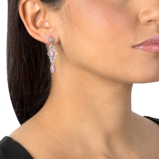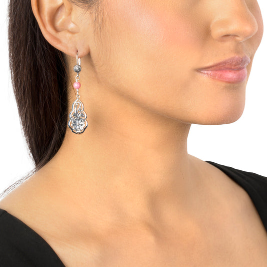 EXCLUSIVELY OURS! Sterling Silver Rhodonite Gemstone Floral Dangle Earrings