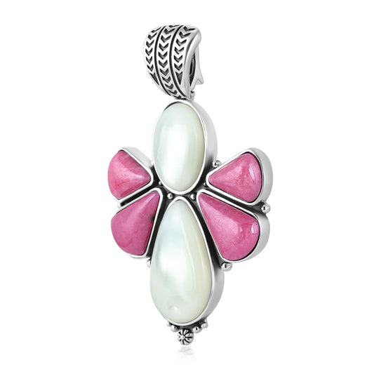 Sterling Silver White Mother of Pearl and Rhodonite Angel Pendant Enhancer