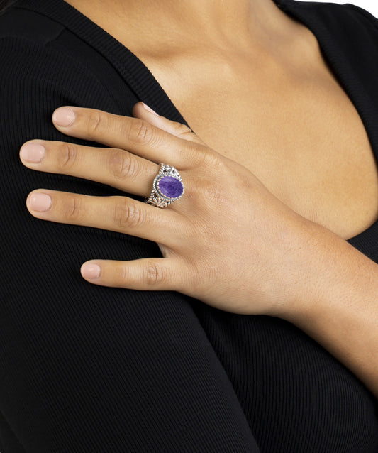 EXCLUSIVELY OURS! Sterling Silver Charoite Concha Flower Ring, Sizes 5 to 10