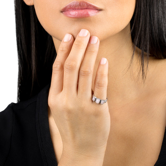 Sterling Silver Pink Opal 3-Stone Fan Ring, Sizes 5 to 11